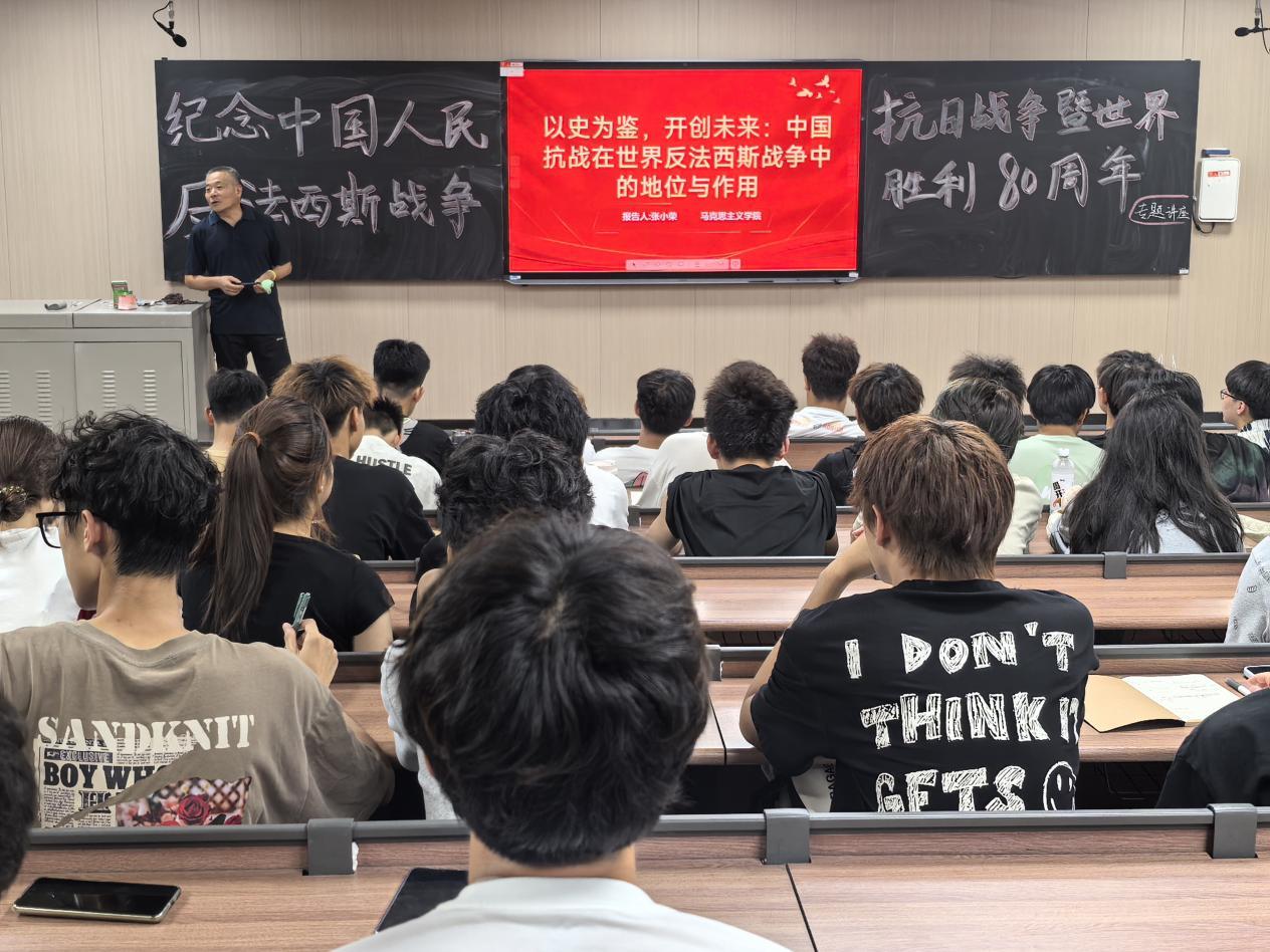 为纪念中国人民抗日战争暨世界反法西斯战争胜利80周年,9月15日,古天乐代言太阳集团网址在3506教室举办“以史为鉴,开创未来——中国抗战在世界反法西斯战争中的地位与作用”专题讲座,此次讲座由马克思主义学院张小荣主讲,学院150余名2025级新生参加。